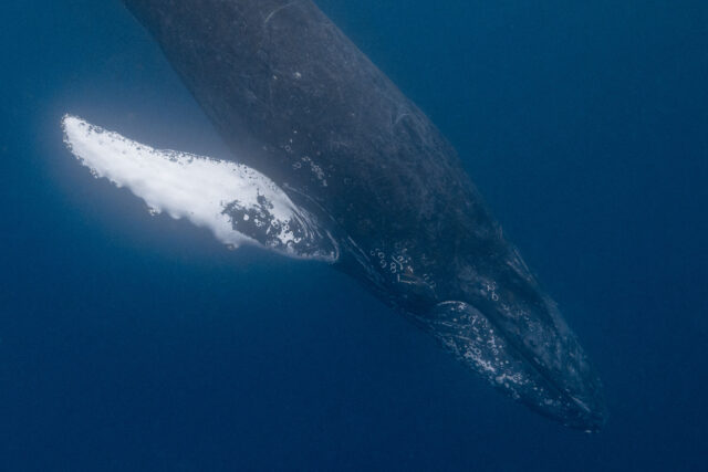 しかしこのクジラは行動が不規則で、スイムもウォッチングも難しいので早めにさよならして、また別のクジラ探しに。